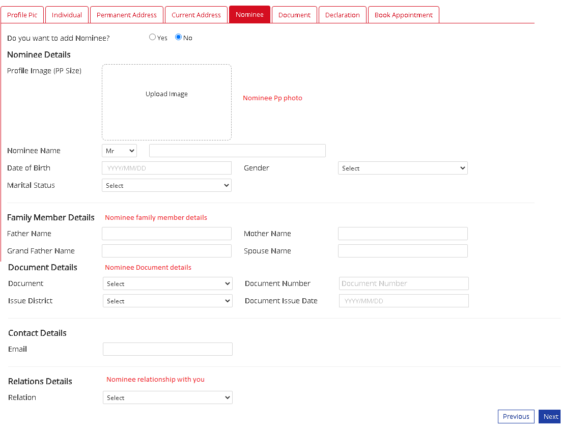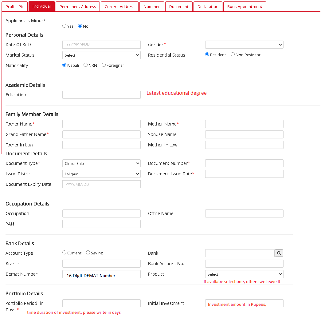 In the Individual detail form, you need to fill-up the basic information about yourself.