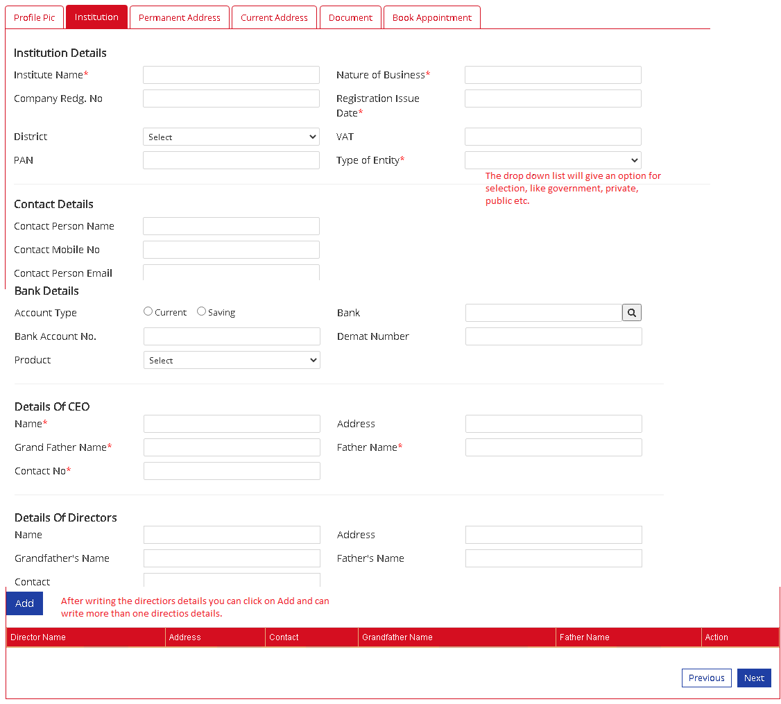 In the Institutional detail form, you need to fill-up the basic information about your organization.