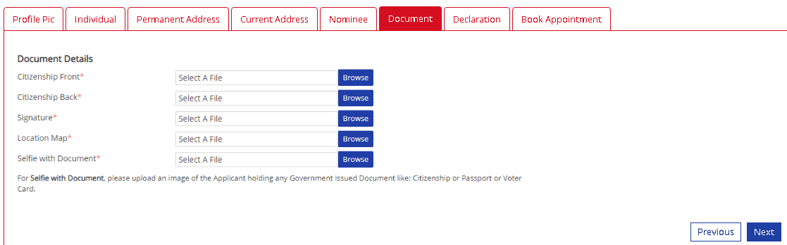 - Selfie with Document; you should click the selfie image carrying one of the document mention below the tab.